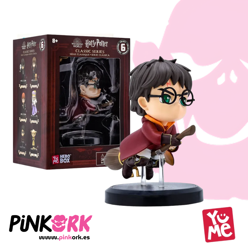 La figura de Harry Potter Quidditch de Yume Hero Box muestra al joven mago equipado con su túnica de Gryffindor y su escoba, listo para atrapar la Snitch Dorada. Con aproximadamente 10 cm de altura, está fabricada con materiales resistentes y duraderos. Ideal para coleccionistas y fans de las aventuras deportivas de Harry Potter. Disponible en stock en www.pinkork.es.