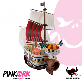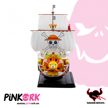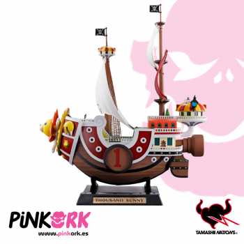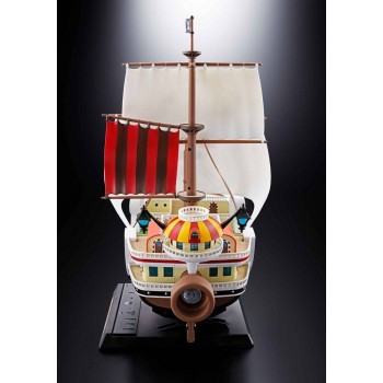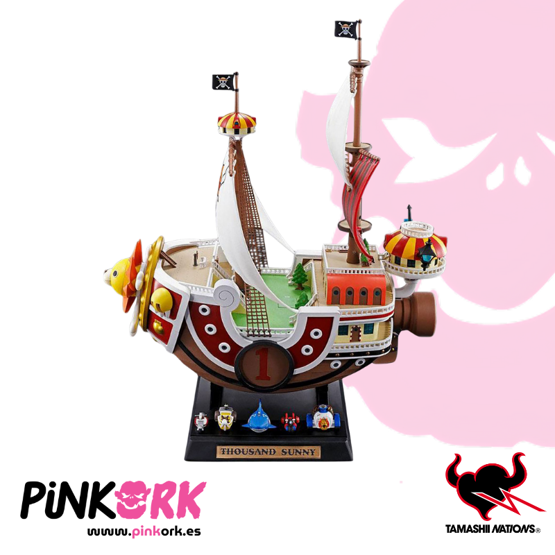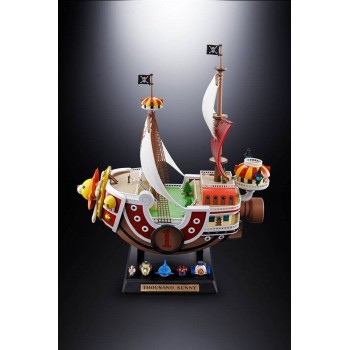 Tamashii Nations presenta esta réplica del barco pirata Thousand Sunny, una versión definitiva llena de detalles y accesorios, para la serie Chogokin. La réplica mide 35 cm de largo y 38 cm de alto. Además incluye un sistema rotativo de Soldier Dog y características de Gaon Cannon, cinco mini máquinas y paredes laterales extraíbles para revelar los espacios interiores. También una plataforma de observación sobre el mástil y una palanca que se puede insertar en el barco y mover. Las partes cruzadas actúan como un interruptor para abrir el cañón Gaon y el Chicken Voyage gira. Cuenta también con dos fundas falsas.