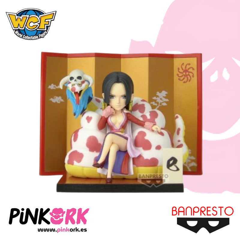 Este set especial de Boa Hancock y Salome forma parte de la línea WCF Special de Banpresto. Con una altura aproximada de 6 cm, la figura presenta a la emperatriz pirata con su elegante vestido rojo, acompañada de su inseparable serpiente Salome. Una combinación perfecta de belleza y poder en formato compacto. Disponible en stock con envío inmediato en www.pinkork.es.