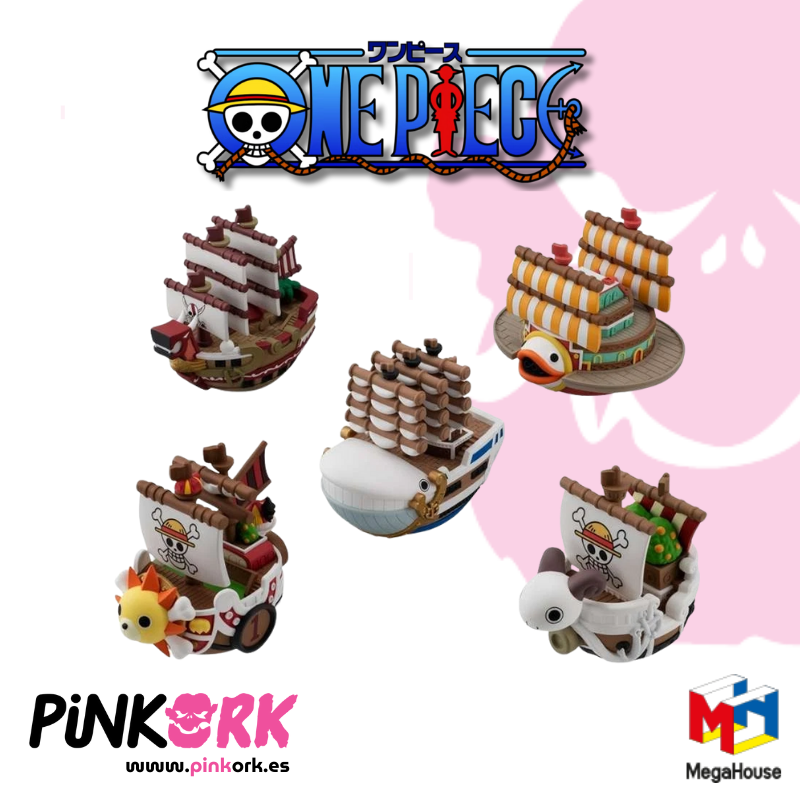 El pack Yuracolle Series de One Piece de MegaHouse reúne 5 icónicos barcos de la saga en formato miniatura de 6 cm, ideales para coleccionistas y fans de la serie. Cada embarcación está reproducida con un diseño detallado y colores vibrantes que reflejan fielmente a las naves más memorables del universo de One Piece. Entre ellas se encuentran el Going Merry, el Thousand Sunny y otras embarcaciones emblemáticas que forman parte de la aventura en la Grand Line.