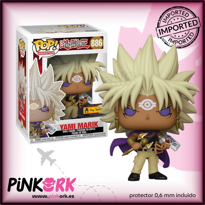 El Funko Pop! N.º 886 de Yami Marik presenta al antagonista más oscuro de Yu-Gi-Oh! con su característico Ojo del Milenio en la frente y el poderoso Bastón del Milenio en mano. Esta edición exclusiva cuenta con el sticker americano de Toy Temple, lo que la convierte en una pieza muy codiciada para los coleccionistas de la franquicia. Además, incluye protector rígido de 0,6 mm para asegurar su conservación en perfecto estado.