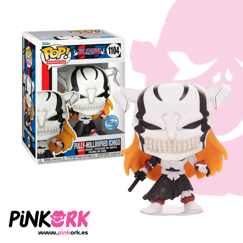 El Funko Pop! N.º 1104 de Ichigo Hollowfied llega en su versión Special Edition, mostrando al protagonista de Bleach en uno de los momentos más oscuros y poderosos de su evolución. La figura presenta a Ichigo parcialmente transformado por su lado Hollow, con la máscara blanca de hueso, sus ojos brillantes y la energía espiritual que lo envuelve. Un diseño impactante que combina lo mejor de su esencia Shinigami y Hollow.