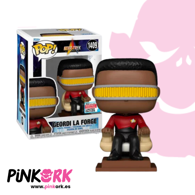El Funko Pop! Televisión N.º 1409 NYCC23 de Geordi La Forge presenta al legendario jefe de ingenieros de la USS Enterprise-D tal como lo vimos en Star Trek: The Next Generation (estrenada en España como Star Trek: La nueva generación). Esta edición exclusiva NYCC 2023 muestra a Geordi con su uniforme clásico de la Flota Estelar y su característico VISOR, que le permite “ver” a pesar de su ceguera congénita. El vinilo satinado reproduce con detalle las correas del visor, los galones de su hombrera de ingeniero y los pliegues de su mono, encapsulando la esencia futurista de la serie.