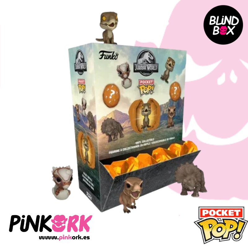 Entre los posibles Pocket Pops encontrarás a Tyrannosaurus Rex, Velociraptor, Stygimoloch Hatchling y Triceratops Fossil, todos esculpidos con gran detalle y perfectos para los fans de Jurassic Park y Jurassic World.