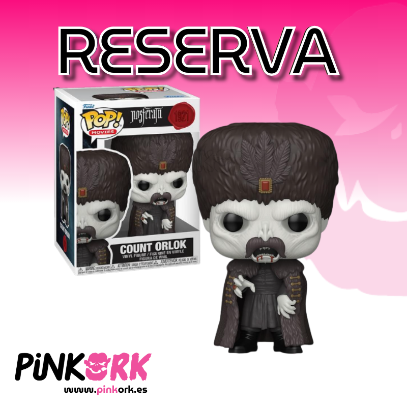 El Funko Pop! N.º 1821 de Count Orlok representa al terrorífico vampiro de Nosferatu en todo su esplendor. Con su figura encorvada, sus garras alargadas y su aspecto cadavérico, esta figura captura la esencia de uno de los monstruos más emblemáticos de la historia del cine. Disponible en reserva en www.pinkork.es.