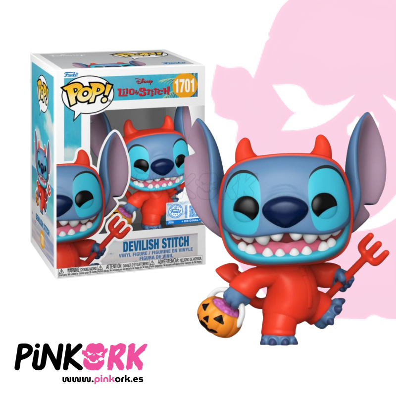 ¡Stitch vuelve más travieso que nunca! El Funko Pop! N.º 1701 de Devilish Stitch (Special Edition) presenta al querido extraterrestre de Lilo & Stitch con un toque endemoniadamente adorable. Con un diseño inspirado en Halloween o en su lado más rebelde, Stitch aparece vestido con un disfraz de pequeño diablillo, completo con cuernos y un tridente que combina a la perfección con su eterna picardía.