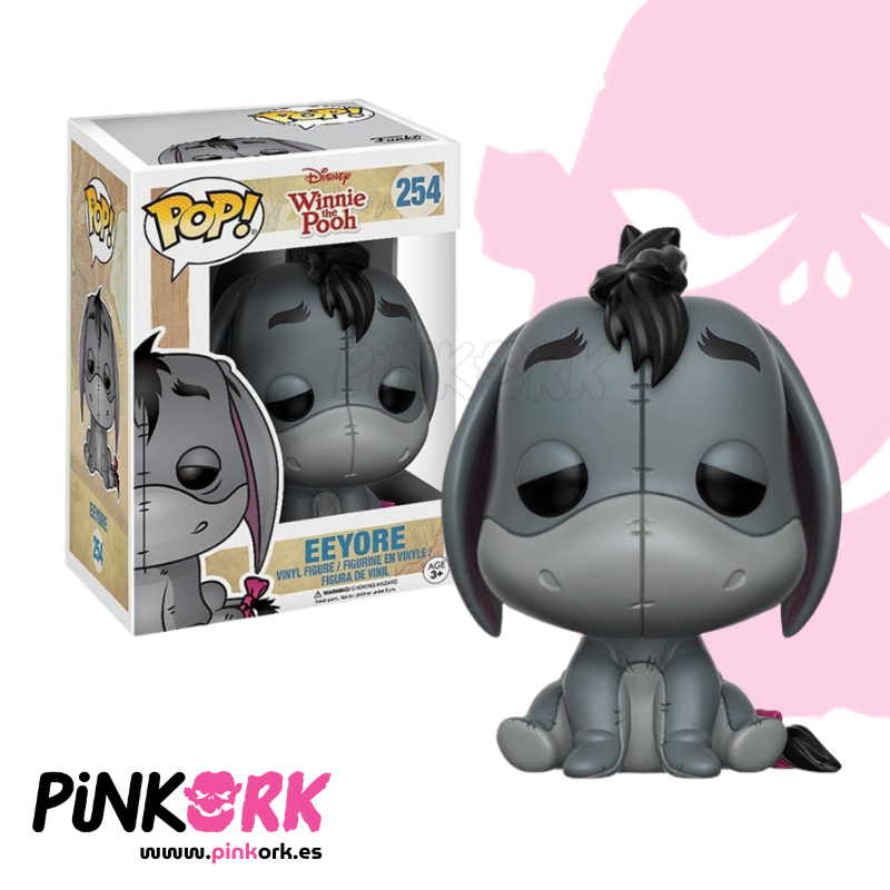 En Pinkork, tu tienda de artículos Funko Pop! referencia en España, puedes comprar Funkos de Winnie the Pooh y otros personajes Disney entrañables, como este Eeyore N° 254. ¿Buscas novedades y ediciones especiales para completar tu Bosque de los Cien Acres? ¡En Pinkork siempre encontrarás las figuras más adorables y coleccionables!