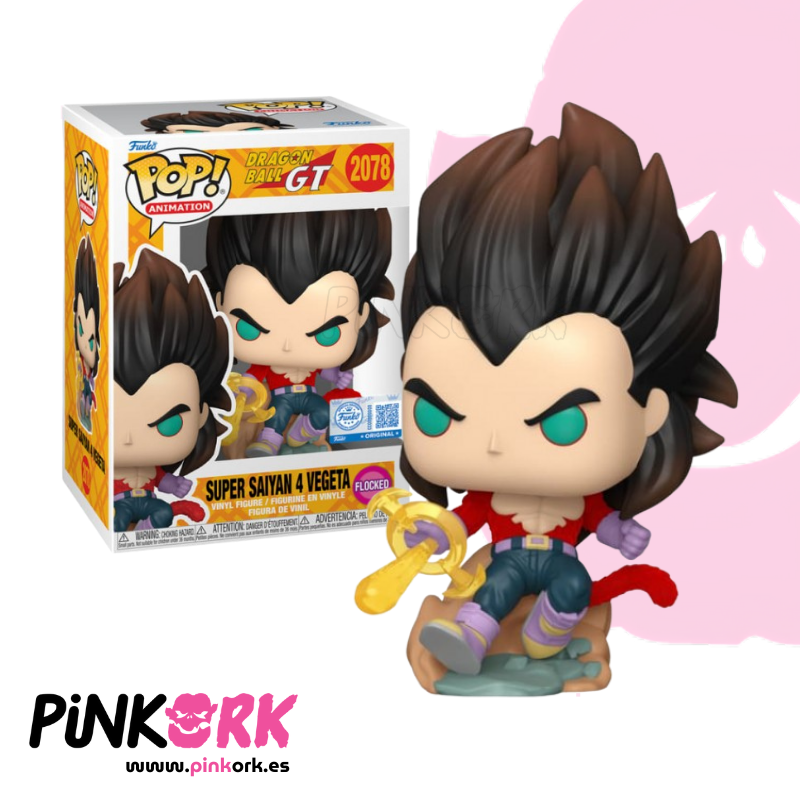 La figura exclusiva Funko Pop! N.º 2078 de Vegeta en su transformación Super Saiyan 4 captura a la perfección uno de los momentos más poderosos de Dragon Ball GT. Este modelo Special Edition en versión Flocked resalta con un acabado aterciopelado que aporta un detalle único al guerrero saiyajin. Vegeta aparece con su característica cabellera negra salvaje, mirada desafiante y sosteniendo la espada de energía dorada. Disponible en www.pinkork.es.