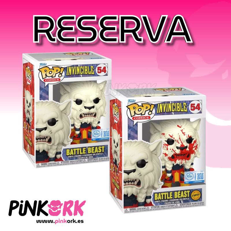 El Funko Pop! N.º 54 de Battle Beast (Special Edition) & Chase Bundle (Bloody) reúne las dos versiones del feroz guerrero del universo Invincible: la edición regular y la espectacular versión Chase ensangrentada, con un acabado que refleja toda la brutalidad de sus legendarios combates. ⚔️🩸