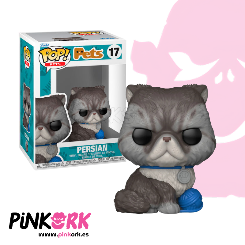 El Funko Pop! N.º 17 de la línea Pets trae a tu estantería a un elegante Persian, la raza felina reconocida por su pelaje largo, orejas redondeadas y porte aristocrático. Esta figura lo muestra descansando con una postura refinada, mirada relajada y detalle en su pelaje que refleja perfectamente la elegancia y tranquilidad que caracterizan a esta raza.