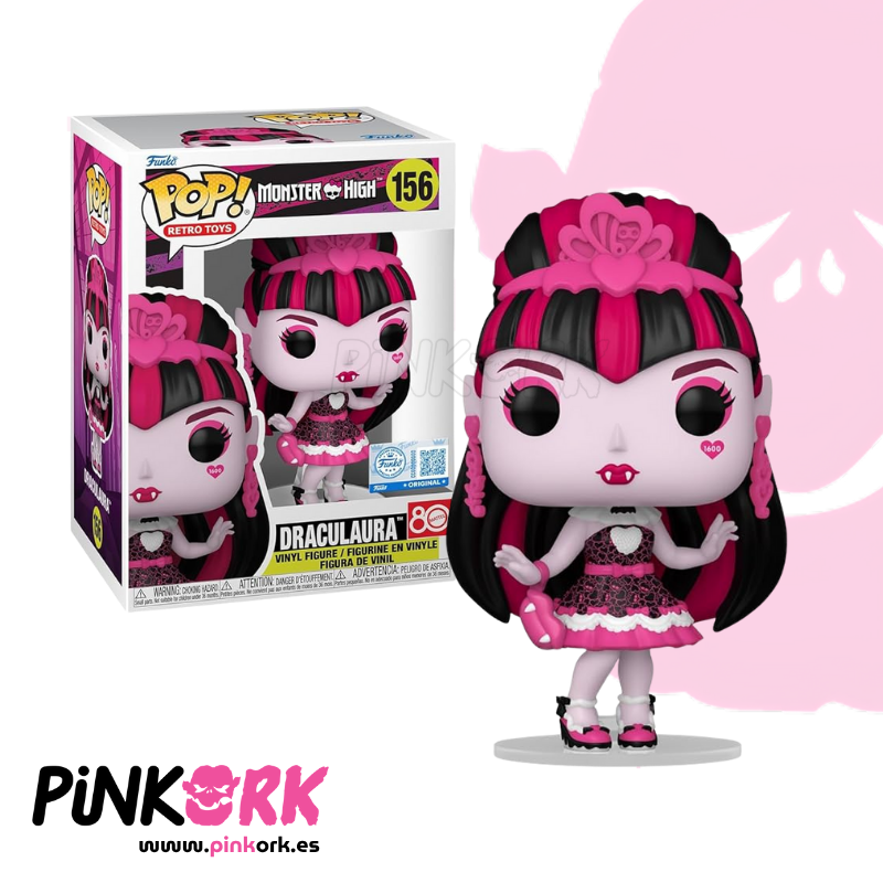 El Funko Pop! N.º 156 de Draculaura nos presenta a la icónica vampiresa de Monster High en su versión más encantadora. Con su característico outfit gótico-chic, corazón rosado en la mejilla y expresión dulce pero segura, esta figura Special Edition (SE) captura toda la esencia de una de las monstruitas favoritas de los fans.