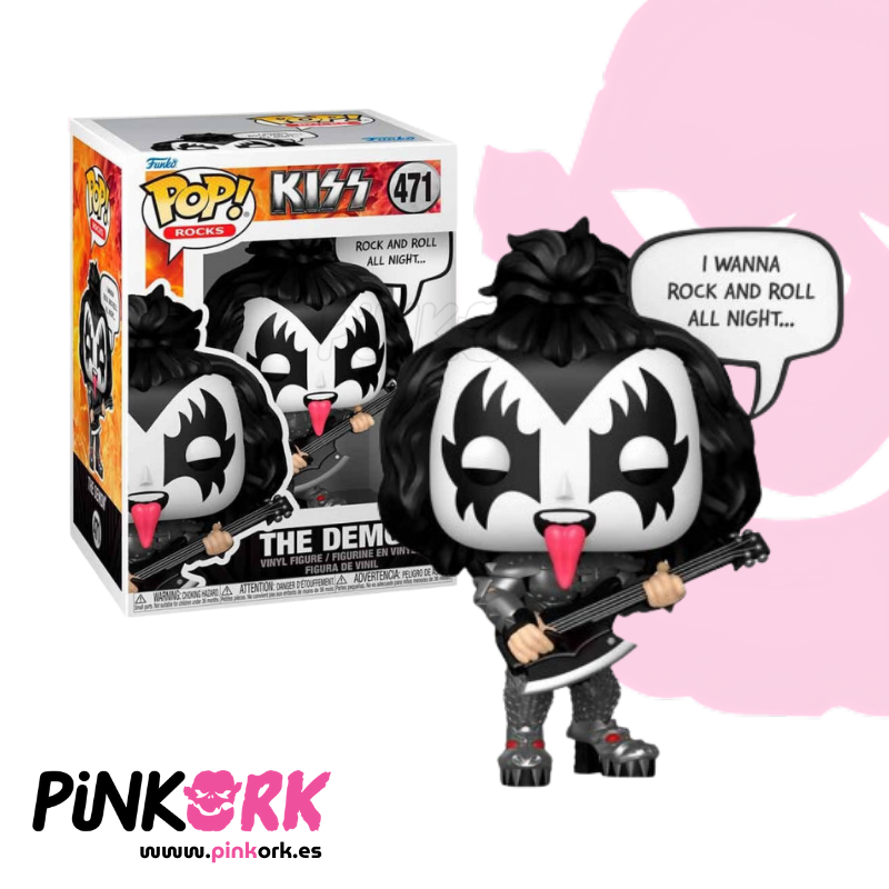 El Funko Pop! N.º 471 de The Demon inmortaliza al legendario Gene Simmons, bajista y vocalista de KISS, en su icónico maquillaje y vestuario de escenario. Con su lengua afuera, el bajo hacha y su imponente armadura negra, esta figura transmite toda la energía salvaje del personaje más emblemático de la banda. Disponible en www.pinkork.es, lista para rockear en tu colección.