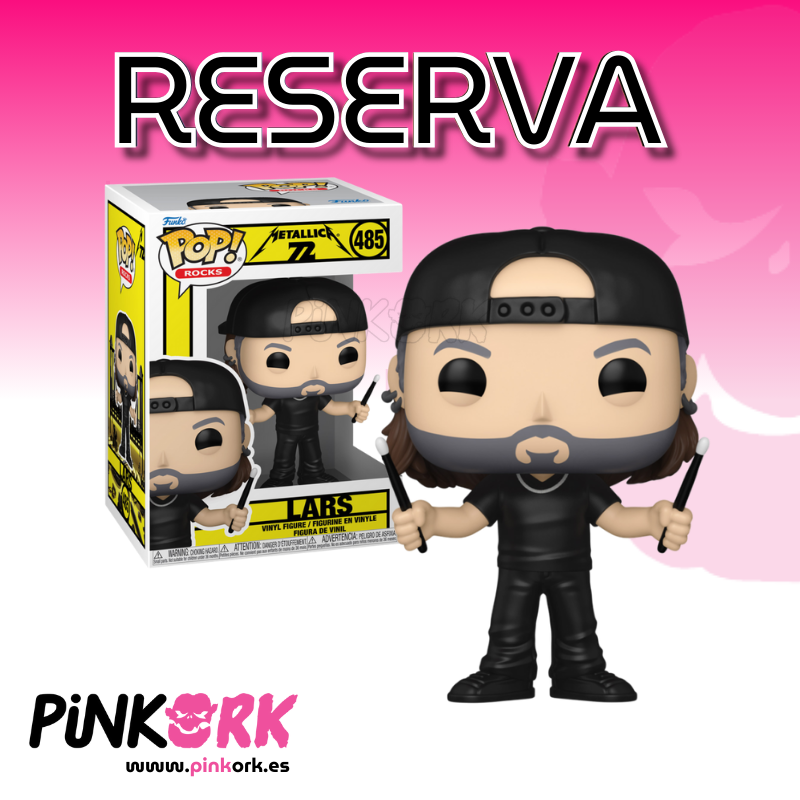 El Funko Pop! N.º 485 de Lars Ulrich muestra al legendario baterista de Metallica en la era 72 Seasons, con su gorra hacia atrás y baquetas listas para marcar el ritmo que ha definido a generaciones enteras de fans. Disponible en reserva en www.pinkork.es.