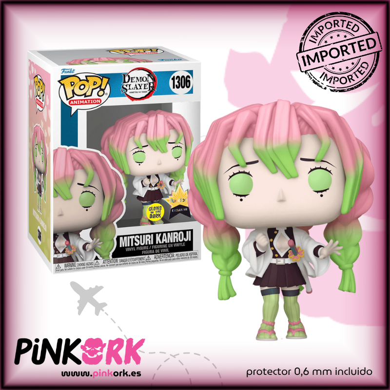 El Funko Pop! N.º 1306 de Mitsuri Kanroji (Glow in the Dark) llega en una versión de importación exclusiva con sticker americano de Fundom Exclusive, representando a la encantadora Pilar del Amor (Hashira del Amor) del universo Demon Slayer: Kimetsu no Yaiba. 💗🌙