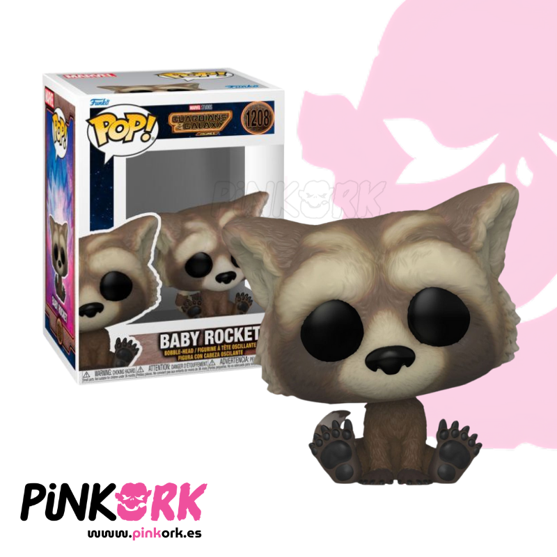 Este Funko Pop! N° 1208 de Baby Rocket nos muestra al querido mapache cibernético de Guardianes de la Galaxia Vol. 3 en su versión más tierna e inocente. Con su pequeño cuerpo, ojos expresivos y detalles mecánicos en su espalda, esta figura es una combinación perfecta entre vulnerabilidad y fortaleza. Disponible en stock con envío inmediato en www.pinkork.es.