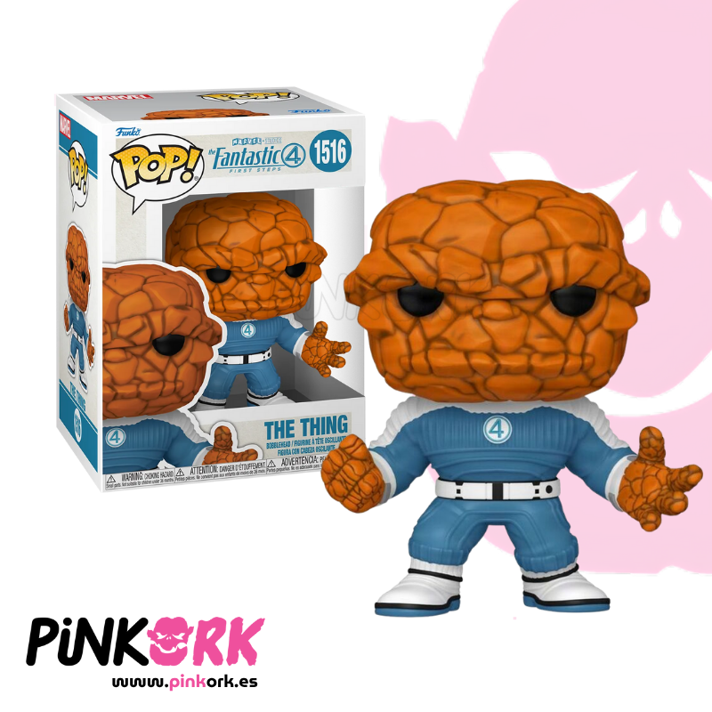 El Funko Pop! N° 1516 de The Thing (La Cosa) muestra al héroe rocoso de los Fantastic Four con su imponente figura y textura detallada en color naranja. En posición de combate y con su clásico pantalón azul, esta figura capta toda la fuerza bruta y el corazón noble de Ben Grimm, uno de los personajes más queridos del universo Marvel.