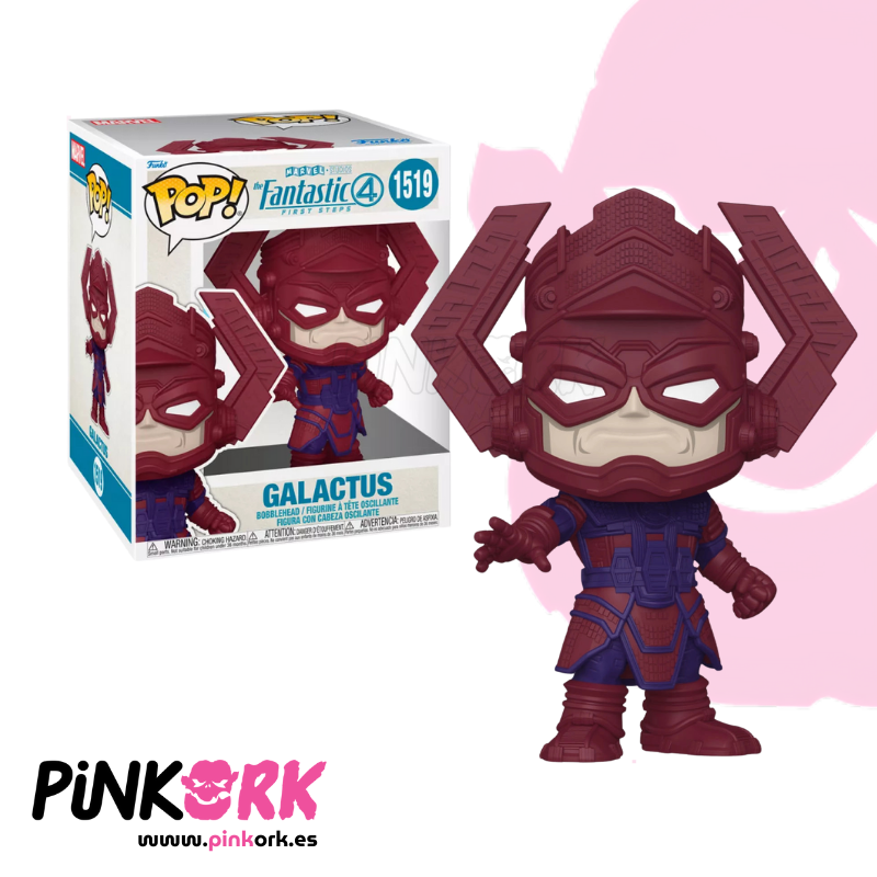 El Funko Pop! N.º 1519 de Galactus en formato 6 pulgadas rinde homenaje al devorador de mundos del universo Marvel. Este Pop de gran tamaño muestra a Galactus con su icónico casco y armadura violeta, en una pose imponente y majestuosa que refleja toda su naturaleza cósmica. Disponible en stock en www.pinkork.es, es una figura imprescindible para los fans de Fantastic Four y coleccionistas del multiverso Marvel.