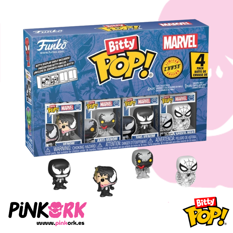 En Pinkork siempre encuentras las últimas novedades de Marvel en formato Bitty Pop!, Funko Pop! y más. Hazte con este 4 Pack y suma a Venom y sus variantes a tu vitrina de coleccionista.