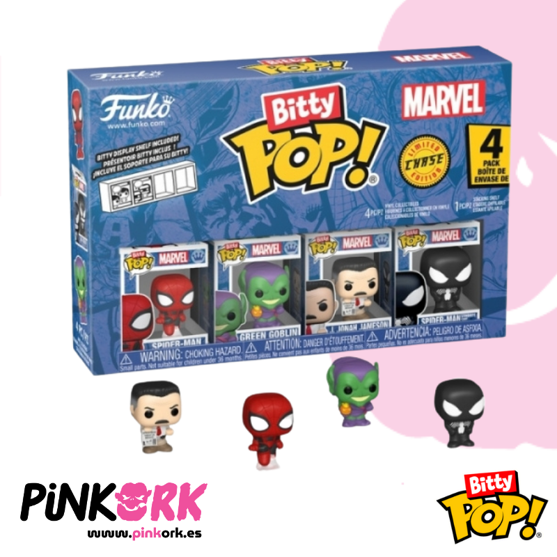 En Pinkork siempre puedes encontrar las últimas novedades en Funko Pop! y Bitty Pop! de Marvel. ¡Hazte con este 4 Pack de Spider-Man y lleva la acción arácnida a tu colección!