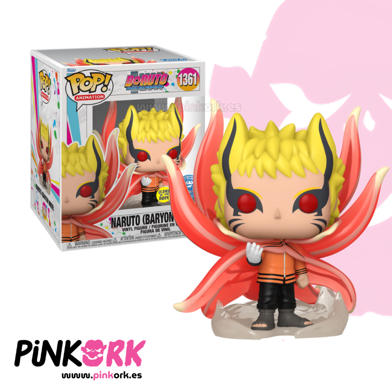 Este Funko Pop! N° 1361 Special Edition trae a Naruto en su modo más poderoso y dramático hasta la fecha: el Baryon Mode. En un formato Super Size de 6 pulgadas y con efecto Glow in the Dark (GITD), la figura muestra a Naruto envuelto en la energía dorada característica de su transformación, capturando toda la intensidad y el sacrificio que implica este modo. Disponible en stock en www.pinkork.es, es una pieza imprescindible para coleccionistas que busquen inmortalizar uno de los momentos más impactantes de Boruto: Naruto Next Generations.