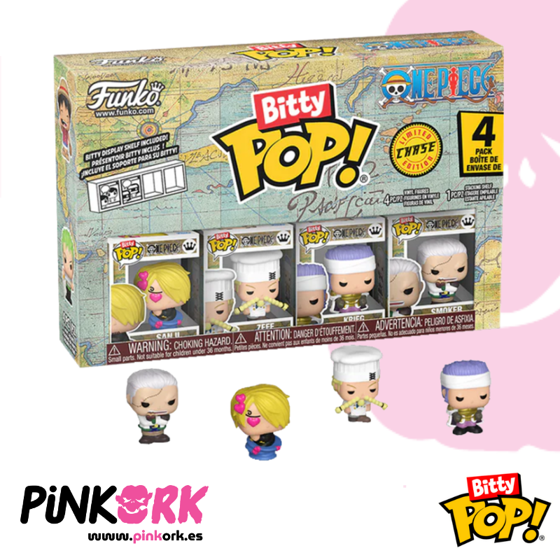En Pinkork siempre puedes encontrar los últimos lanzamientos y figuras exclusivas Funko Pop! y Bitty Pop! para completar tu colección del universo One Piece.