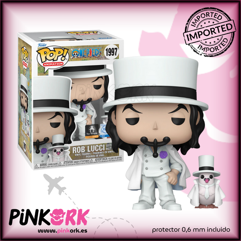 El Funko Pop! N.º 1997 de Rob Lucci, el temible miembro del CP9 de One Piece, llega en una versión exclusiva con sticker americano Toy Temple. La figura presenta al despiadado asesino del Gobierno Mundial con su inconfundible traje oscuro, acompañado de su fiel paloma Hattori. Como artículo de importación premium, incluye protector rígido de 0,6 mm, asegurando la máxima protección para los coleccionistas.