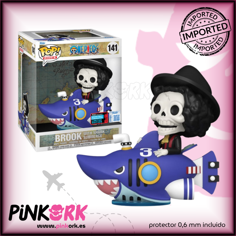 El Funko Pop! One Piece – Brook with Shark Submerge N.º 141 (NYCC 2025) es una pieza imprescindible para los coleccionistas y amantes del mundo de One Piece, especialmente de las exclusivas de convención.