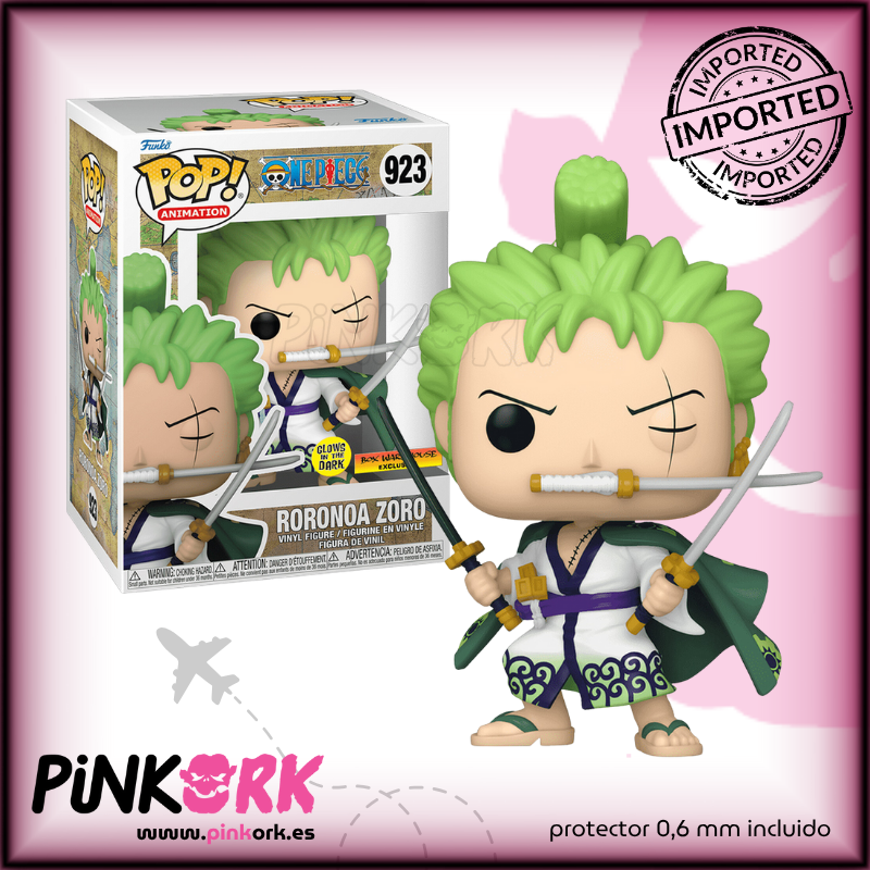 El Funko Pop! One Piece – Roronoa Zoro N.º 923 (GITD) [Importación – Box Warehouse Exclusive] captura toda esa intensidad con un diseño que brilla tanto de día como de noche.