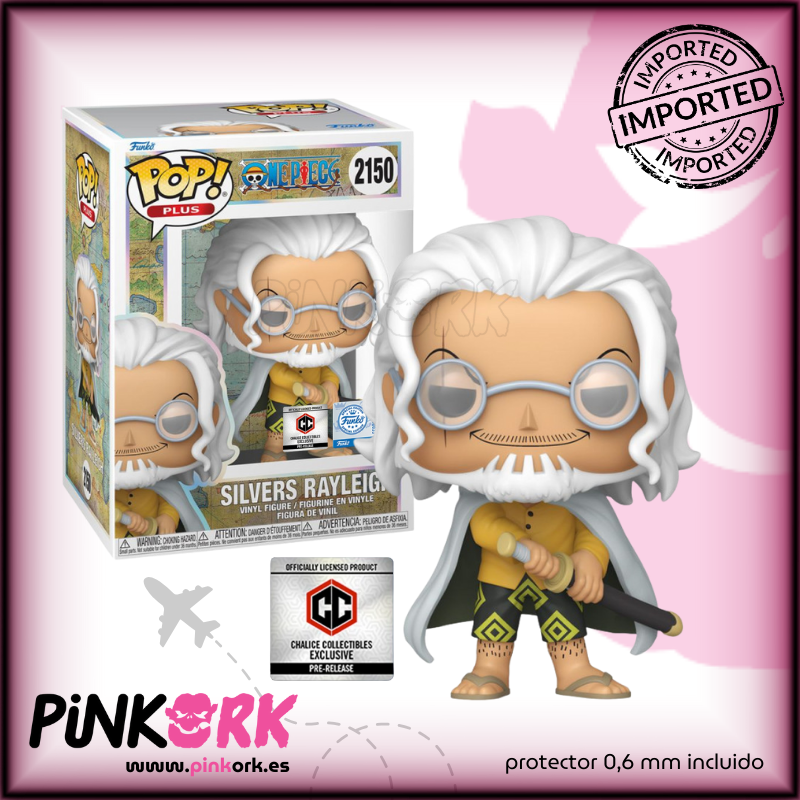 El Funko Pop! N.º 2150 de Silvers Rayleigh, también conocido como el "Rey Oscuro", llega en su versión de importación con sticker Chalice Collectibles Pre-Release. La figura muestra a Rayleigh con su característica melena plateada, gafas redondas y capa, empuñando su espada con la calma y seguridad de un verdadero maestro del Haki. Disponible en www.pinkork.es este exclusivo de importación es una auténtica joya para los coleccionistas de One Piece.