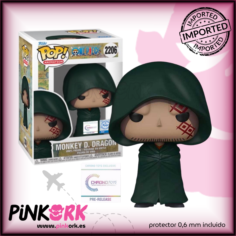 El Funko Pop! N.º 2206 de Monkey D. Dragon llega en una versión de importación exclusiva, con sticker Pre-Release de Chrono Toys y protector de 0,6 mm incluido. Esta figura rinde homenaje al enigmático líder del Ejército Revolucionario de One Piece, uno de los personajes más misteriosos y poderosos del universo creado por Eiichiro Oda. ⚔️🔥