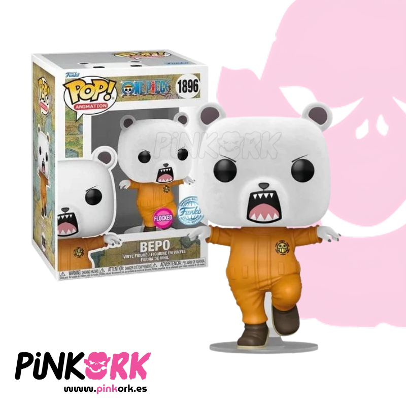 Este Funko Pop! N° 1896 de Bepo, en su versión Flocked Special Edition, nos trae al entrañable miembro de los Piratas del Corazón con un acabado aterciopelado que resalta su aspecto de oso polar antropomórfico. Con su característico traje naranja y expresión decidida, esta figura es perfecta para los fans de One Piece que quieren algo especial en su colección. Disponible en stock con envío inmediato en www.pinkork.es.