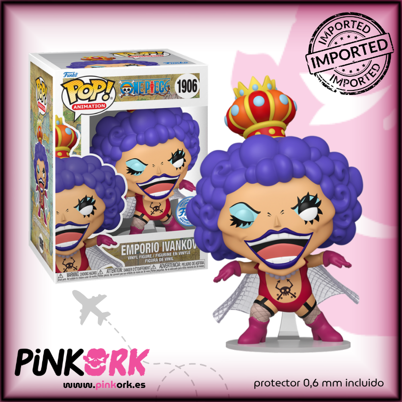 El Funko Pop! N° 1906 de Emporio Ivankov, edición Special Edition, muestra al carismático revolucionario de One Piece en todo su esplendor: cabello morado estilo afro, pestañas dramáticas, sonrisa gigante y su traje extravagante con capa. Una figura llena de energía, color y actitud que captura la esencia de este personaje tan icónico. Disponible en stock en www.pinkork.es como artículo de importación, con unidades limitadas y envío inmediato.