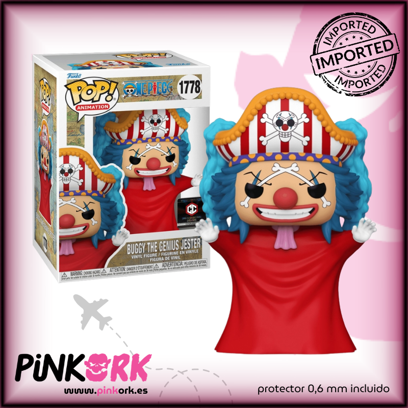 El Funko Pop! N.º 1778 de Buggy The Genius Jester llega en una edición exclusiva de Chalice Collectibles, mostrando al excéntrico y carismático pirata del universo de One Piece. Con su inconfundible nariz roja, su traje colorido y su pose extravagante, esta figura refleja a la perfección la mezcla de humor y amenaza que caracteriza a Buggy. Disponible en stock en www.pinkork.es