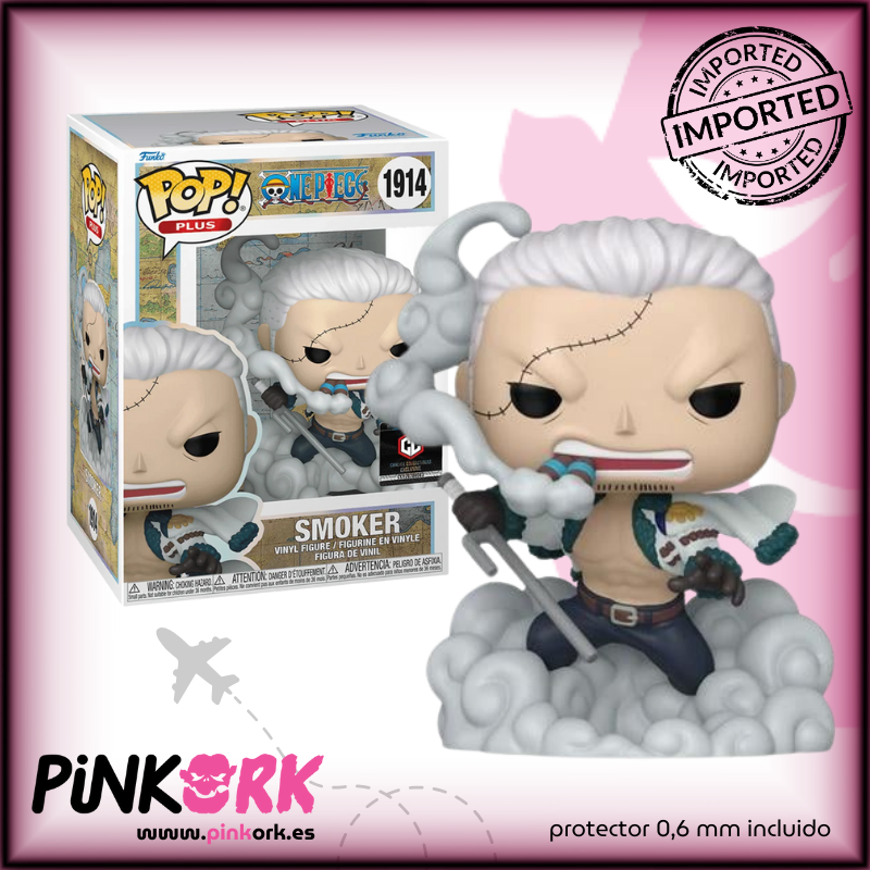 El Funko Pop! N.º 1914 de Smoker llega en una edición exclusiva de Chalice Collectibles, mostrando al imponente vicealmirante de la Marina de One Piece. Con su característico abrigo blanco de la Marina, el puro en la boca y su pose desafiante, esta figura refleja perfectamente la fuerza y autoridad del usuario de la Fruta del Diablo Moku Moku no Mi. Disponible en stock en www.pinkork.es