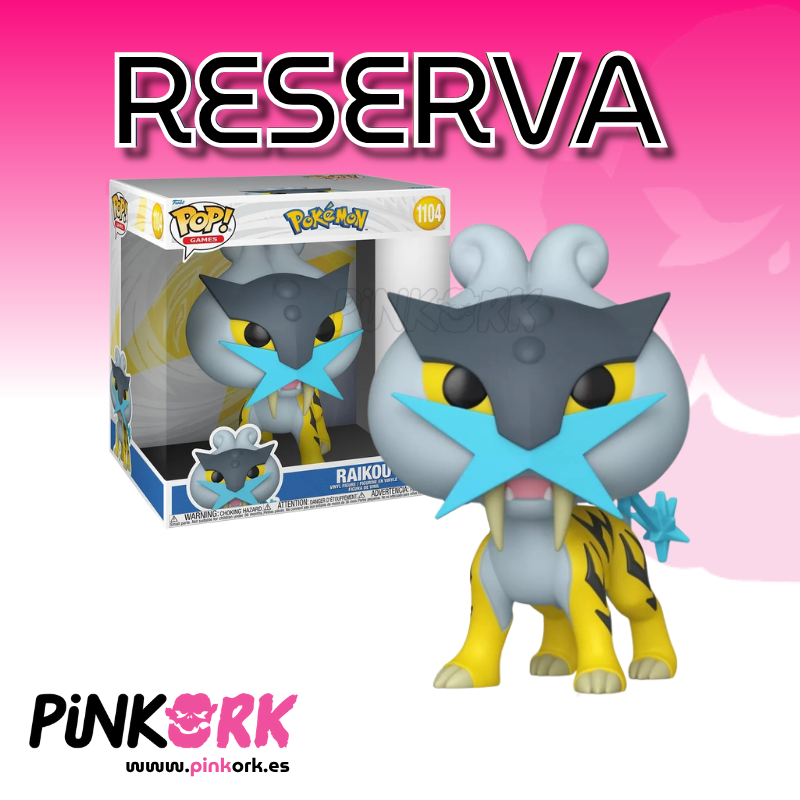 El Funko Pop! N.º 1104 de Raikou llega en formato Jumbo Sized de 10 pulgadas como una exclusiva de la New York Comic Con 2025 (NYCC 25). Esta impresionante figura captura toda la majestuosidad del Pokémon legendario de tipo eléctrico, con su melena morada ondeante, cuerpo felino dorado y detalles eléctricos en su diseño. Su tamaño y presencia lo convierten en una pieza imprescindible para los coleccionistas de Pokémon. ⚡
