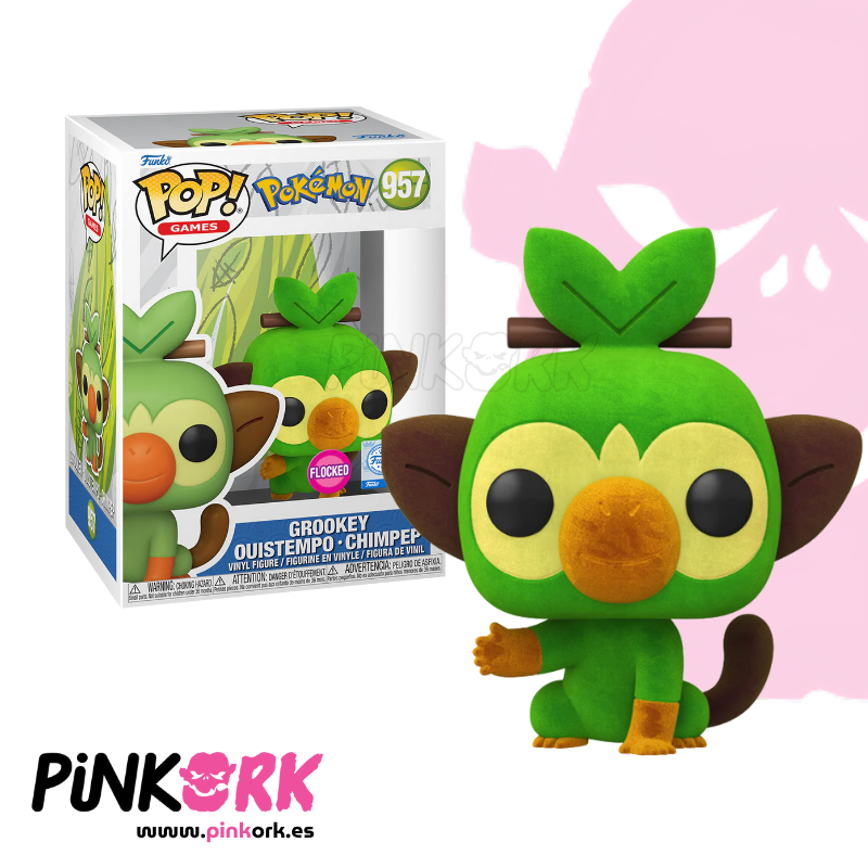 En Pinkork, tu tienda de artículos Funko Pop! referencia en España, puedes comprar figuras exclusivas como este Grookey Flocked Special Edition. ¿Buscas Funkos de Pokémon con acabados especiales o de tus iniciales favoritos? ¡En Pinkork siempre tenemos las últimas novedades y versiones irresistibles para los verdaderos fans!