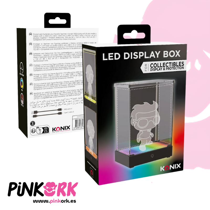 La Konix Vitrina LED Display Box es el accesorio perfecto para proteger y resaltar tus figuras de colección como Funko Pop, Banpresto Qposket u otras piezas de hasta 9 x 9 x 14 cm. Fabricada en acrílico de alta calidad, mantiene tus coleccionables a salvo del polvo mientras añade un toque espectacular gracias a su sistema de iluminación RGB.