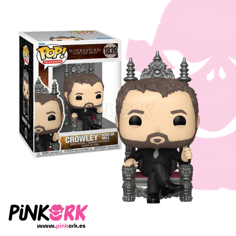El Funko Pop! N.º 1839 de Crowley, el Rey del Infierno, retrata al demonio británico más carismático de Supernatural (Sobrenatural). Sentado en su trono, con su elegante traje negro y su característica expresión de superioridad, esta figura refleja a la perfección su ironía y astucia.