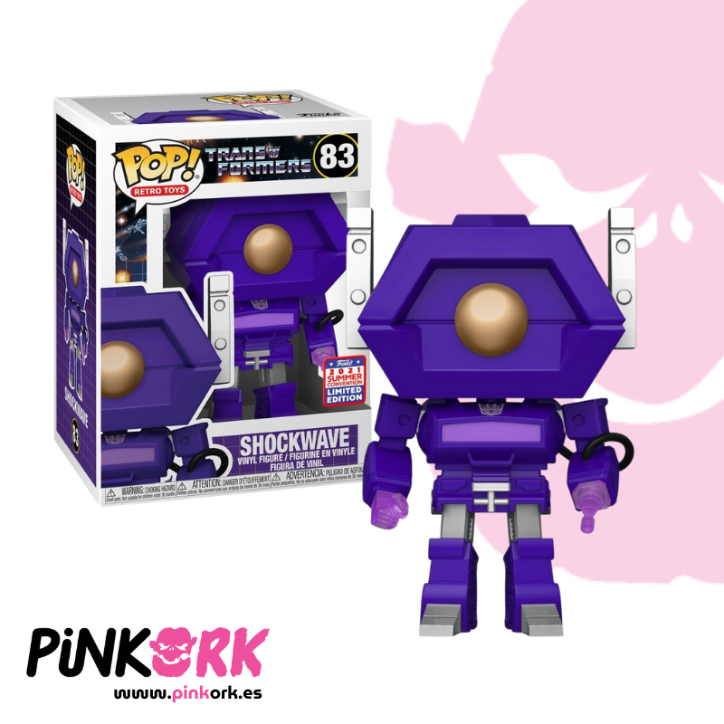 El Funko Pop! Nº 83 de Shockwave G1, exclusivo de la San Diego Comic-Con 2021, rinde homenaje a uno de los villanos más icónicos del universo Transformers. Este Pop captura la estética retro de la generación original (G1), con su distintivo ojo ciclópeo, cuerpo púrpura angular y actitud fría y calculadora. Una figura imperdible para los coleccionistas más exigentes. Disponible en stock en www.pinkork.es.