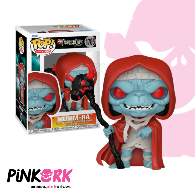 El Funko Pop! N° 1705 de Mumm-Ra representa al villano supremo de ThunderCats con un nivel de detalle espectacular. Con su capa roja flotante, vendas místicas y expresión maligna, esta figura captura la transformación del antiguo sacerdote en su forma poderosa. Disponible en stock en www.pinkork.es, lista para envío inmediato.