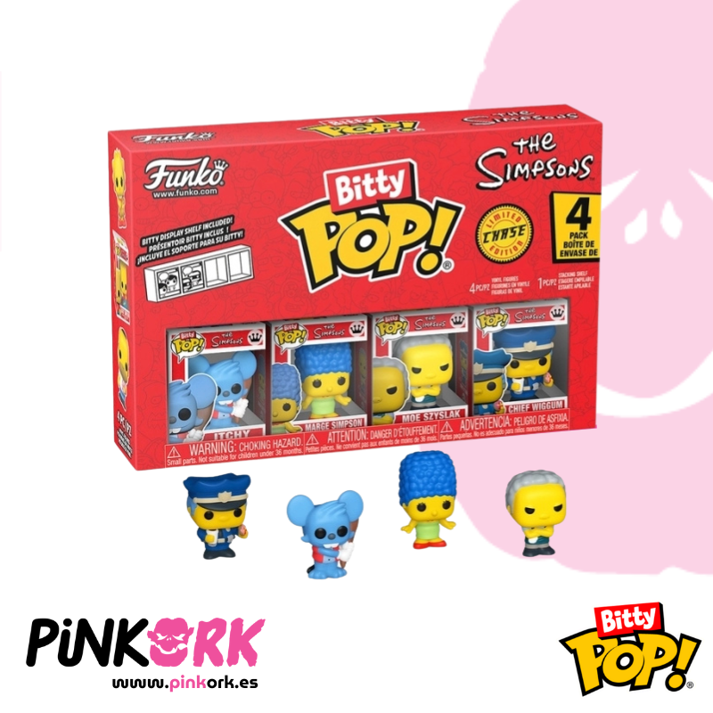 En Pinkork, puedes comprar figuras exclusivas y nuevas colecciones Funko de The Simpsons, como este 4-Pack de Itchy, disponible ya y listo para envío inmediato.