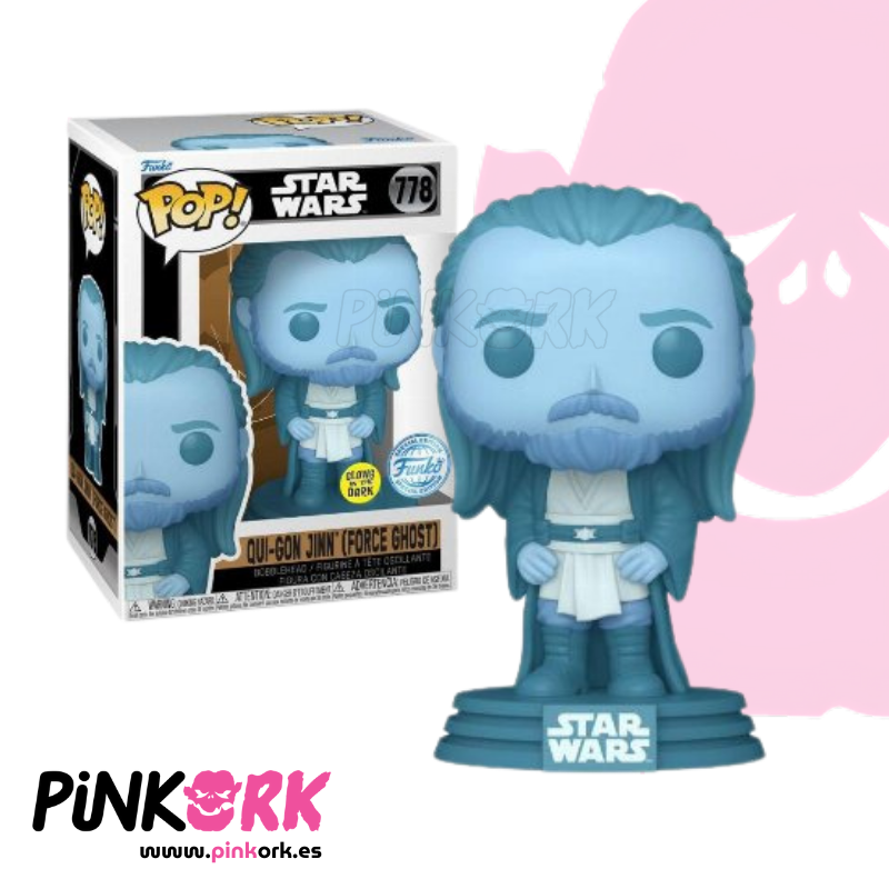 El Funko Pop! N° 778 de Qui-Gon Jinn como Force Ghost, en edición Glow in the Dark (GITD) Special Edition, muestra al legendario Maestro Jedi envuelto en un aura espectral. Con un acabado translúcido y detalles que brillan en la oscuridad, esta figura capta la presencia serena y poderosa del personaje en su forma espiritual. Ya disponible para reservar en www.pinkork.es.