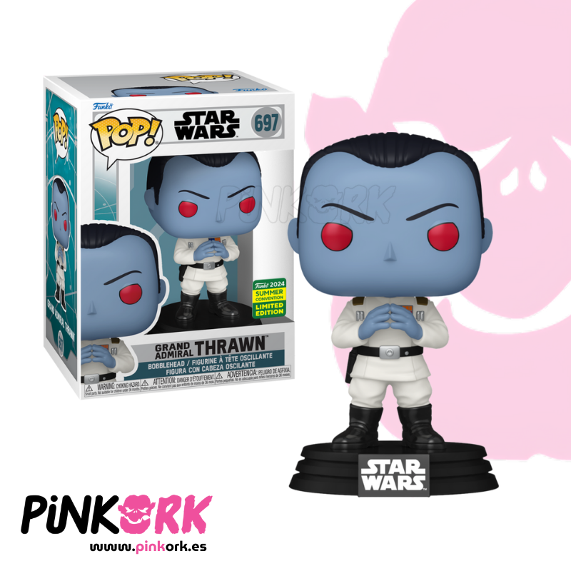 El Funko Pop! N° 697 de Grand Admiral Thrawn, en su edición exclusiva de la Summer Convention 2024, muestra al temido estratega imperial con su uniforme blanco impecable, manos tras la espalda y su inconfundible piel azul y ojos rojos. Una figura de presencia imponente y elegancia militar, perfecta para fans del universo expandido y las series actuales. Disponible en stock en www.pinkork.es, con envío inmediato.