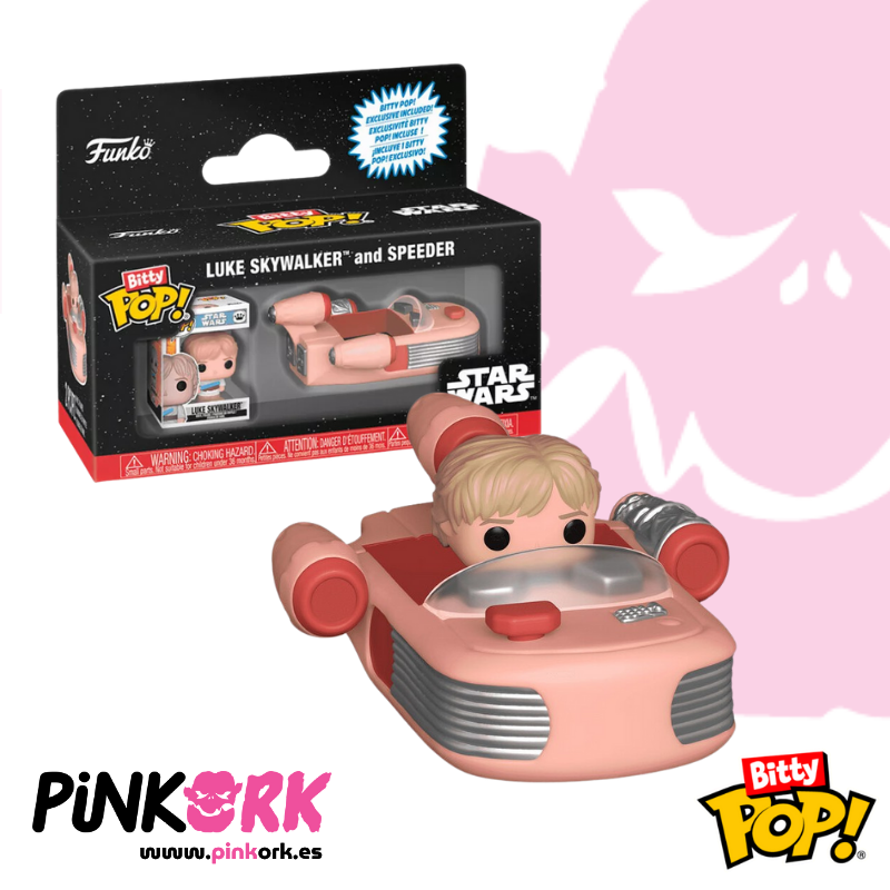 En Pinkork, tu tienda de artículos Funko Pop! referencia en España, puedes comprar sets como este Luke Skywalker and Landspeeder, además de muchas otras novedades y ediciones especiales de Star Wars en formato Bitty Pop!
