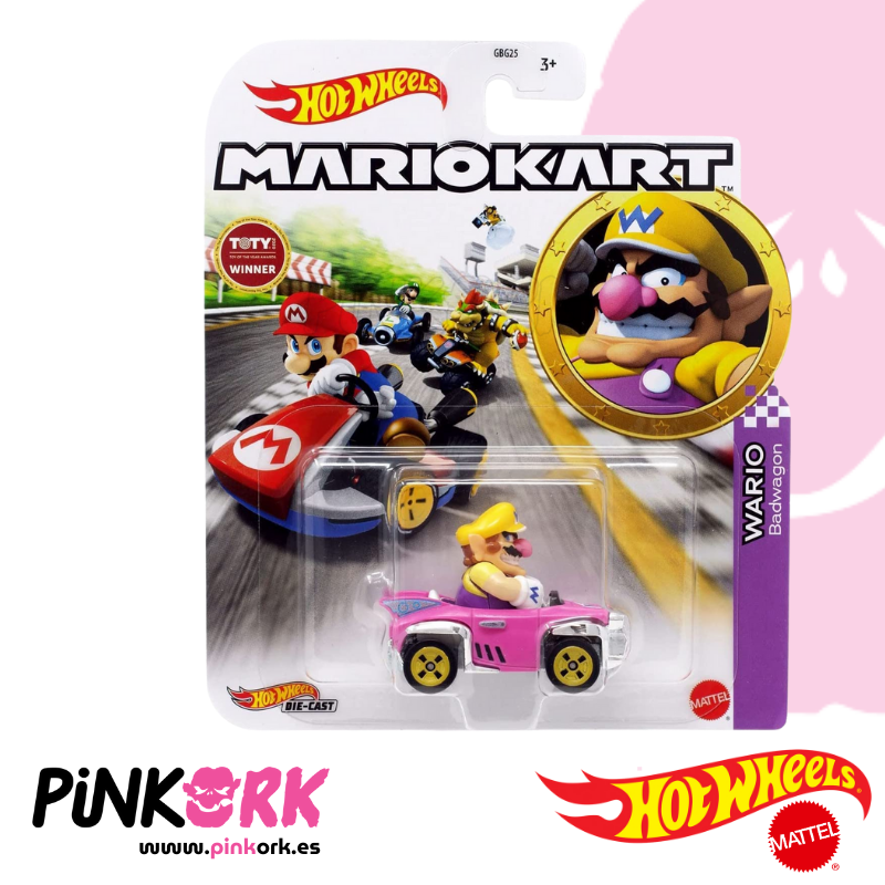 El inconfundible Wario pisa a fondo con su imponente Badwagon en esta edición Hot Wheels inspirada en Mario Kart. Con un diseño robusto y lleno de detalles, esta réplica die-cast refleja la personalidad desafiante y extravagante del rival de Mario. Presentado en blíster oficial con ilustraciones del videojuego, es una pieza imprescindible tanto para fans de Nintendo como para coleccionistas de Hot Wheels. Disponible en www.pinkork.es para quienes buscan añadir un kart diferente y poderoso a su colección.