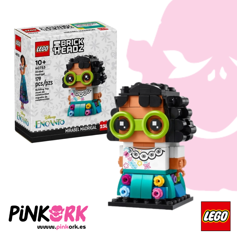 El set LEGO BrickHeadz 40753 de Mirabel Madrigal recrea a la entrañable protagonista de Encanto con todo el colorido y encanto de la película. Con 179 piezas, este modelo incluye detalles icónicos como sus gafas verdes, su blusa bordada y su falda llena de flores. Perfecto para fans de Disney y coleccionistas de LEGO. Disponible en stock en www.pinkork.es.