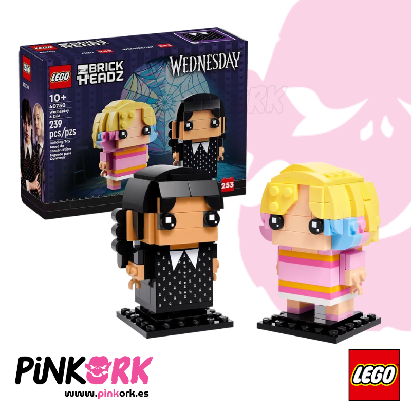 Juguetes basados en la serie para televisión: Los peques entran en la mágica Academia Nunca Más con el set de construcción LEGO® BrickHeadz™ Miércoles y Enid para niñas y niños a partir de 10 años