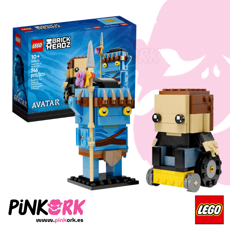 A los fans de LEGO® BrickHeadz™ y la película Avatar les encantará el set Jake Sully y su Avatar (40554), inspirado en la forma humana de Jake, equipado con una silla de ruedas desmontable, y su avatar, con la lanza Na’vi. Ambas versiones del personaje incluyen sólidas bases, por lo que resultan perfectas para jugar y exponer. Los coleccionistas de sets LEGO BrickHeadz pueden también divertirse combinando modelos para crear sus propios personajes híbridos supergraciosos.