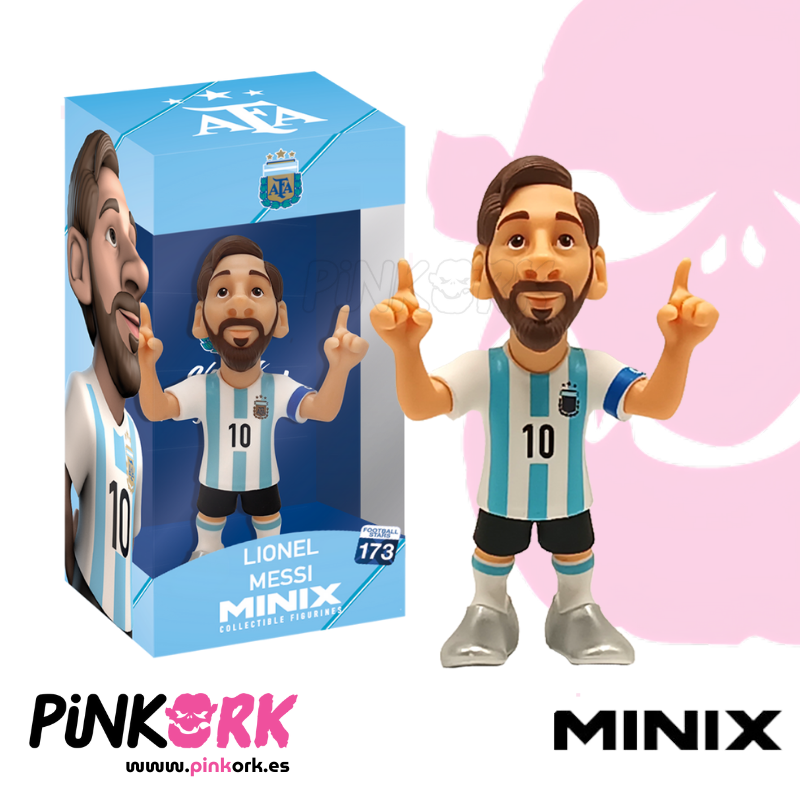 La figura Minix de Lionel Messi, con la camiseta de la selección argentina, captura al futbolista más grande de todos los tiempos en su mejor forma. Con detalles precisos en su vestimenta y su gesto concentrado, esta figura es un homenaje al ídolo del fútbol mundial. Disponible en stock en www.pinkork.es.