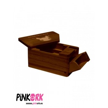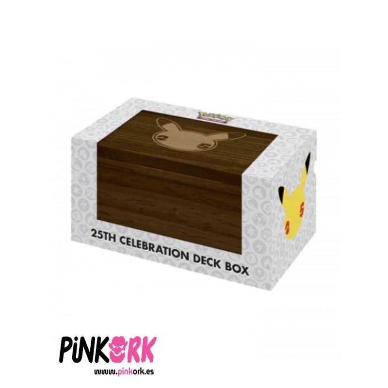 Esta es una caja de edición especial, de madera serigrafiada con el logotipo del 25º Aniversario de Pokémon